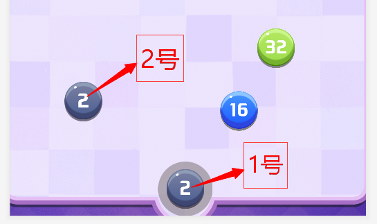 如图所示,1号球为发射球,如果我把 1号球发射 碰撞到 2号球,应该为1号吃掉2号球,并且数字变为4,
