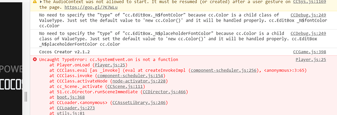 它说cc.SystemEvent.on不是方法。。。