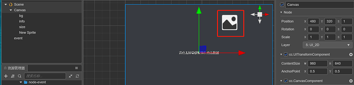 如图Canvas的Node下Position 是480 和320 就是UITransformCompnet的一半。