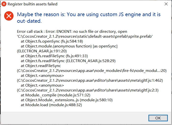 报错提示问题出现在你自定义了引擎。这类问题只能重新安装Creator解决。
