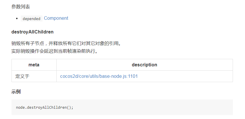 但实际上运行destroyAllChildren()方法后,再查看节点的childrenCount,还是有子节点数量。查看API如下图: