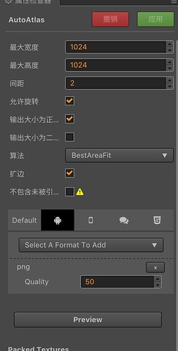版本 2.1.0 android 打包自动图集 整体包不减小