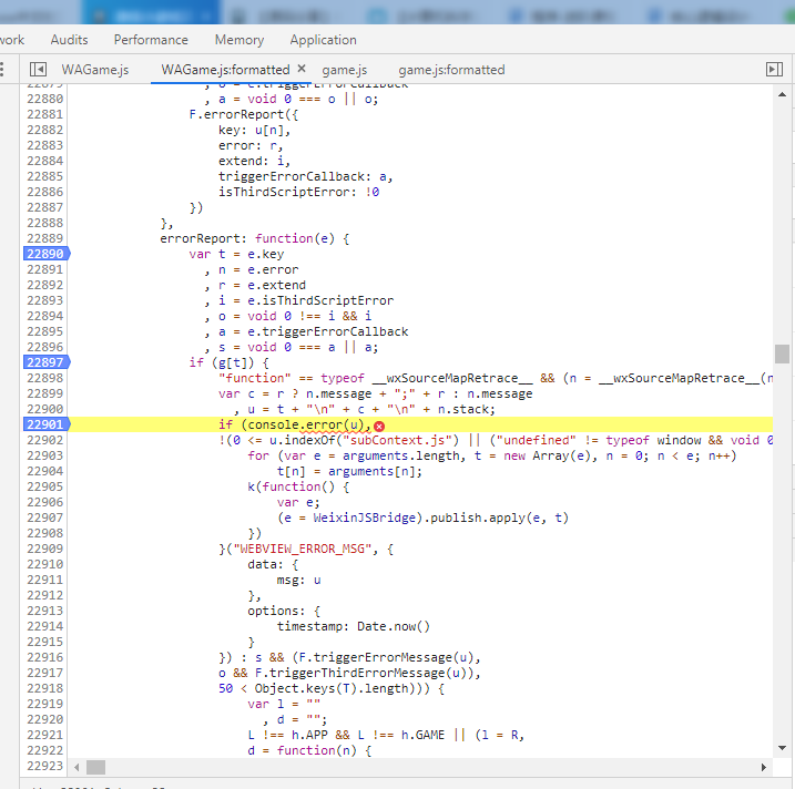 快捷键control p然后输入game.js:5514:87870直接跳转