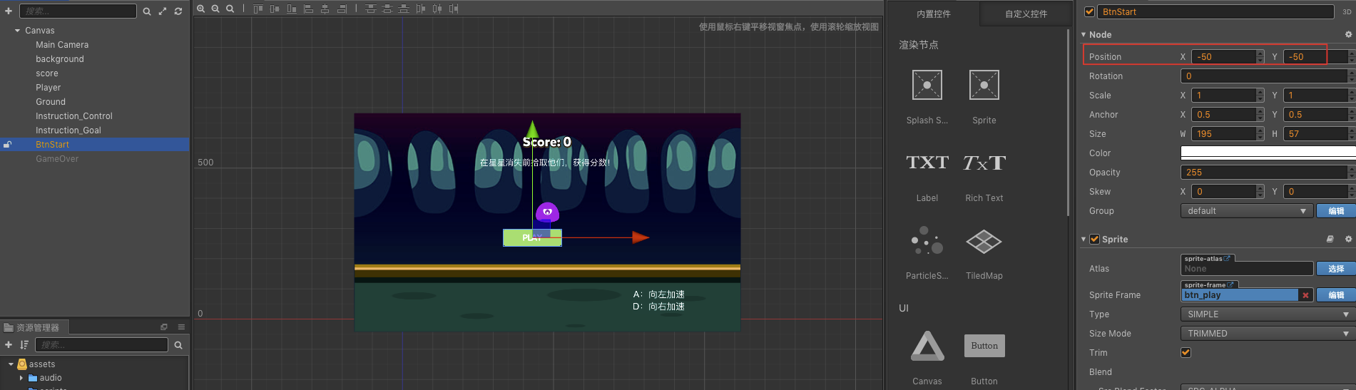 如果是在960*640的手机上,(0, 0)点在左下角,那么BtnStart的屏幕坐标是(430, 270)才对