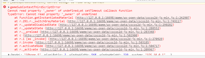 情景:之前在creator 2.09版本做的微信小游戏排行榜开放数据域项目和主项目构建到A游戏账号上,一切正常,期间更新creator的版本为2.1,将开放数据域项目和主项目构建到B游戏账号,出现以下报错,主项目的程序正常,开放数据域项目代码没执行
