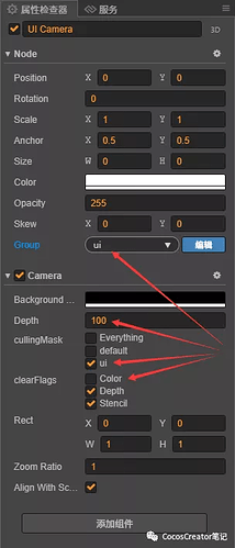 设置 UI Camera 属性:
