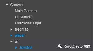 这里需要的是节点是 Main Camera(摄像机)、tiledmap(地图)、player(玩家)