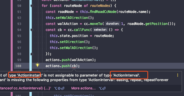 1、移动一段距离:const walkAction = cc.moveTo(1, roadNode.getPosition());