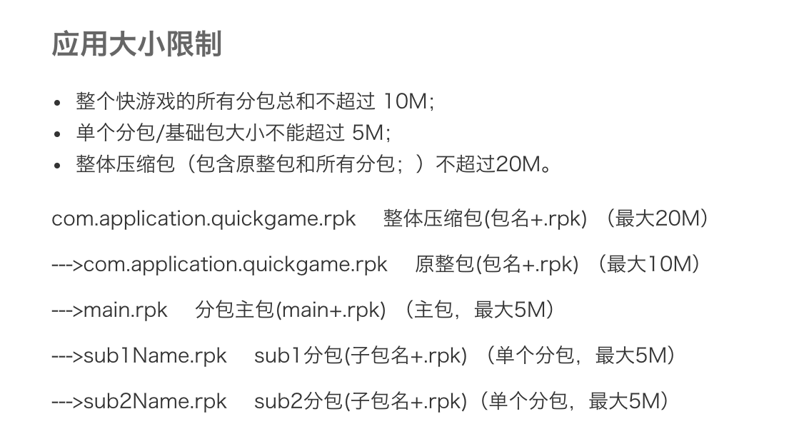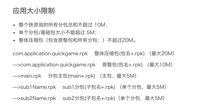目前小米平台的分包规范还是主包最大 5m, 单个分包最大 5m,总和不超过 10m,