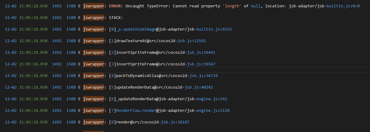 如题,如果andriod原生端的时候,将CLEANUP_IMAGE_CACHE设置为true,那么动态合图的时候,运行到gfx.Texture2D.updateSubImage的时候就会报错,报错如下