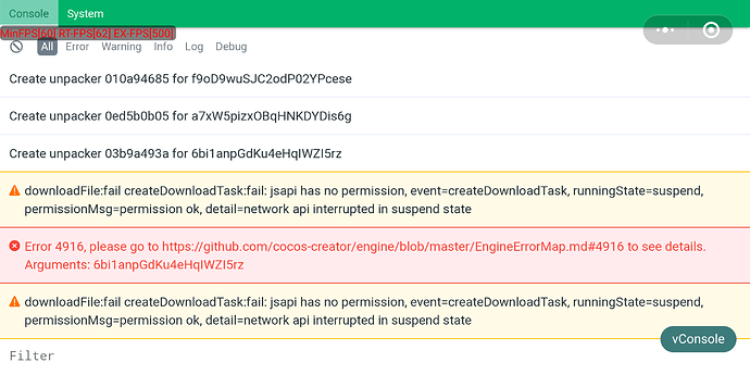 ccc2.2.1 同遇到 4916 问题,清理过 build、library、local 文件夹,重新构建发布过,但手机上玩着玩着还是会偶然遇到同样的问题,表现就是卡加载。res 目录是放在远程服务器上的。