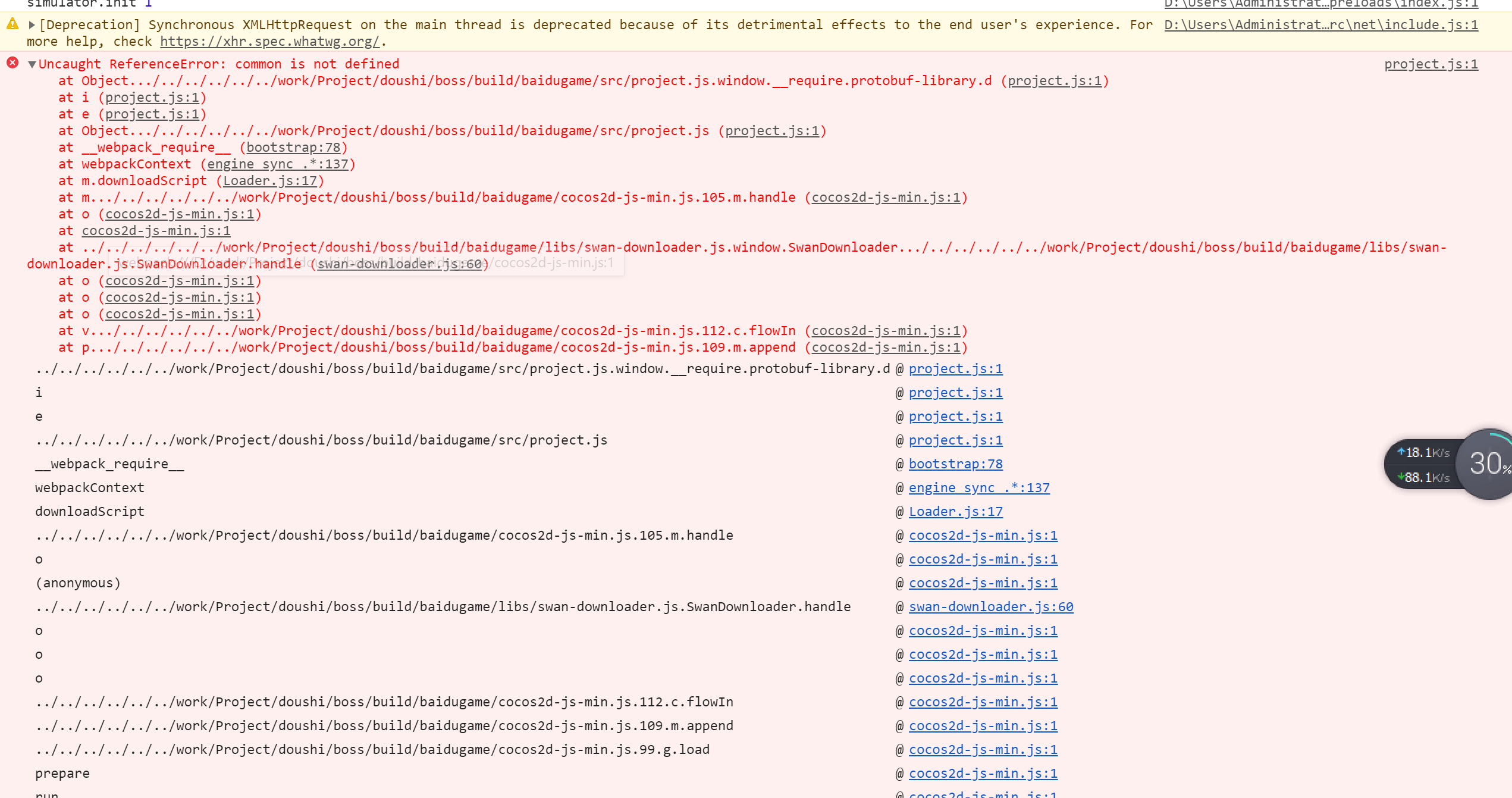 导出百度小游戏出错