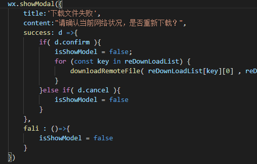 上图是微信小游戏,资源下载失败会弹出这个对话框提示