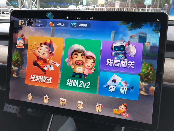 《欢乐斗地主》《欢乐麻将》和《欢乐升级》是特斯拉首次支持的在线网络游戏。只要通过微信或 QQ 账号登陆,车主(玩家)就可以和朋友们一起在线游戏。同时,你在特斯拉上的游戏记录还能与手机同步,在车内玩完之后还能继续在手机上游戏。