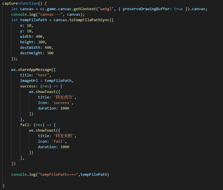 我用 cc.game.canvas 加 微信的toTempFilePathSync 截了个全屏没问题