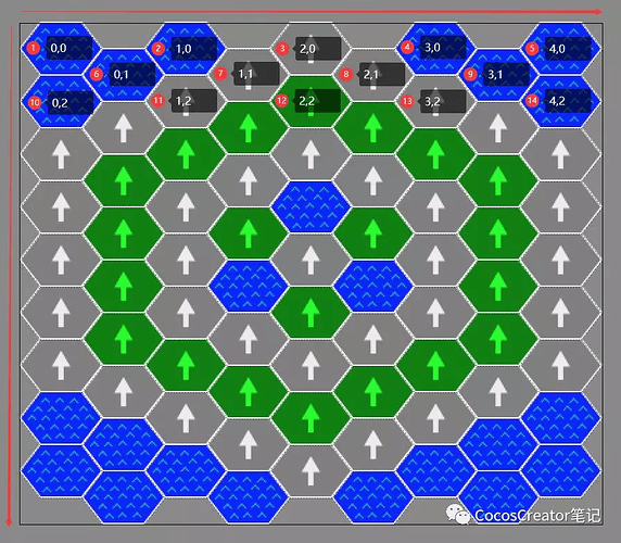 正常/45度交错/六角交错地图左上角第一个格子为起始点:(0,0)