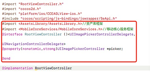 在 RootViewController.mm中设置选择图片完成后的回调方法