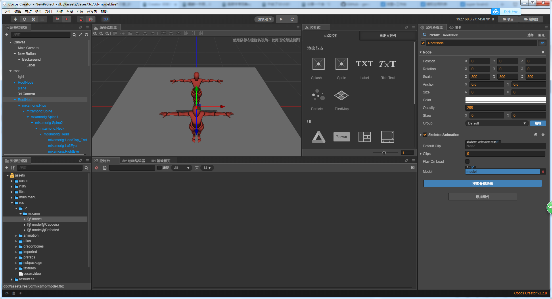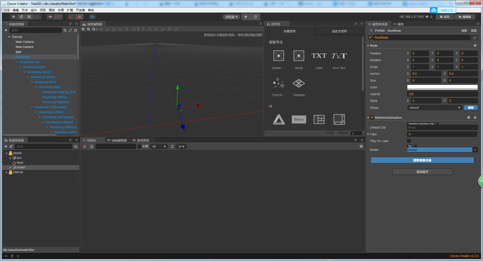 这是 2.2,你可以试试看修改模型节点的缩放,看看是不是比例问题。