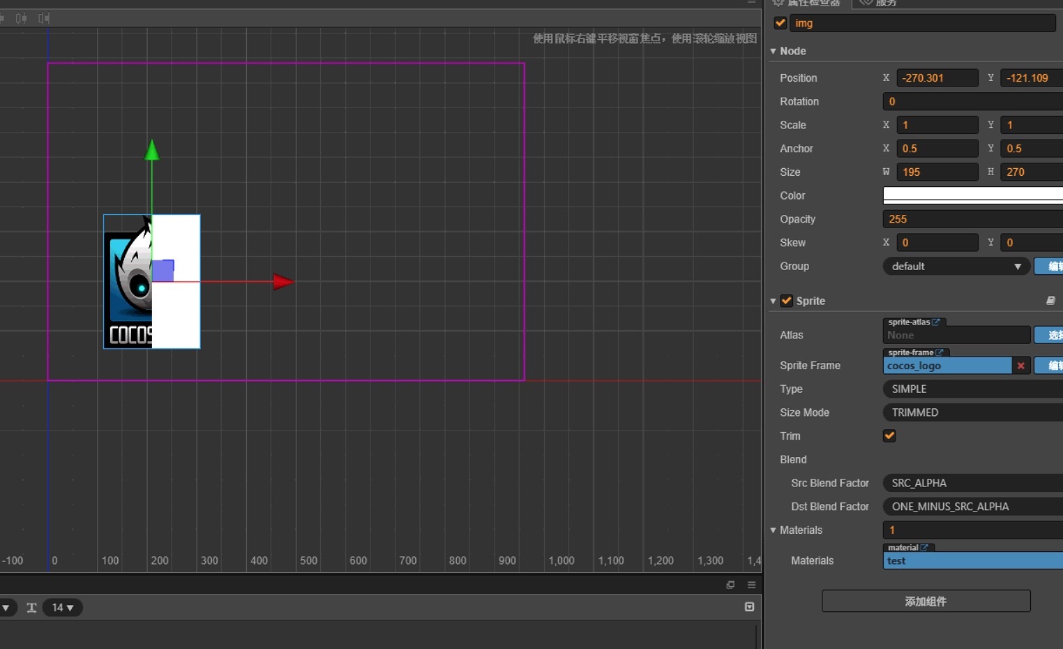 新建一个hello world工程,在场景中添加一张图片。新建一个材质替换图片的默认材质。