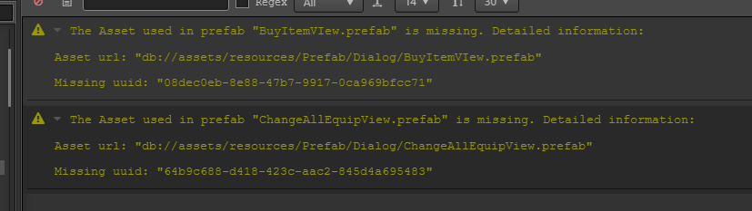 很郁闷,这些预制体运行起来的时候是没有警告也没有报错。但是在编辑器里面打开预制体的时候就会出现这样的警告,找不出问题来