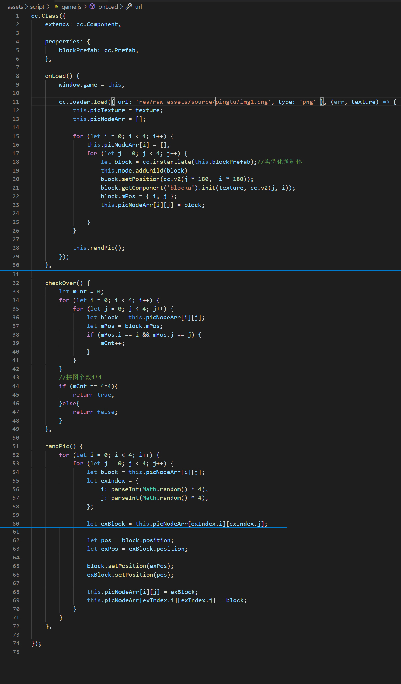 在b站学了一个拼图游戏的教程,想给游戏增加关数,下一关切换成不同的图片,源码如下: