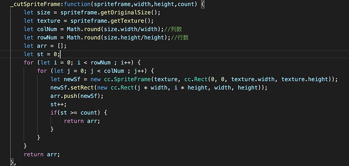 我现在解析json是没有问题,就是裁剪图片返回成spriteFrames不知道怎么弄。
