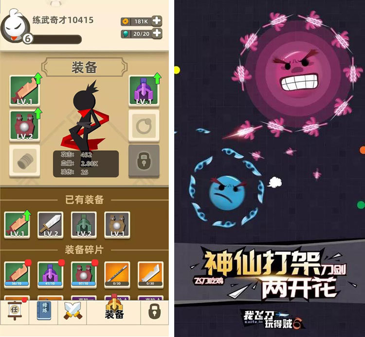 左《我功夫特牛》,右《我飞刀玩得贼6》