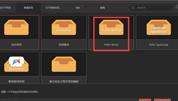 游戏demo,建议直接使用helloworld模板打包尝试,成功打包后,可继续探索打包个人游戏项目!