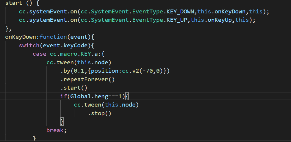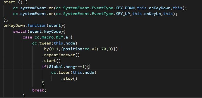 如图所示,请问我的代码怎么改才能达到按下a按键使人物移动,松开就会使人物停止运动的效果呢?