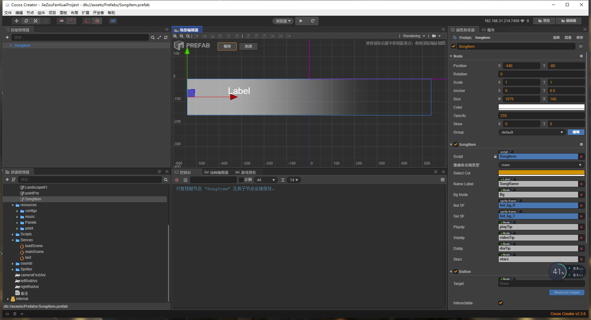 我点击修改了一个预制体后: