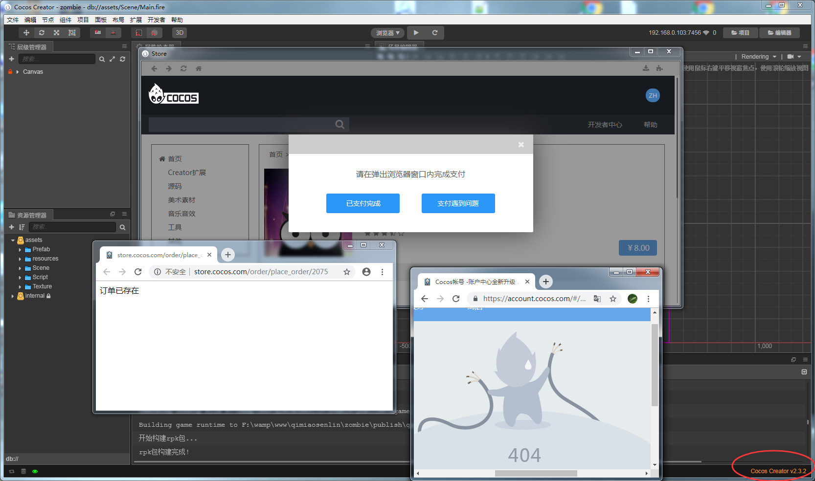 方便的话,提供一下你当前网络的ip,以及使用从编辑器版本。