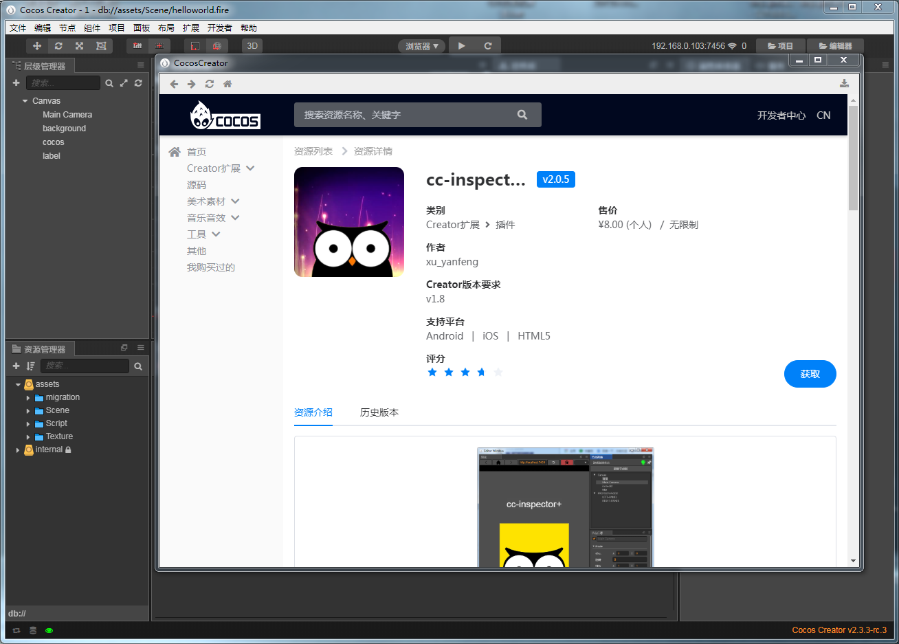 插件的安装总是有些问题,我基本每次都是安装好几遍才行,然后如果是全局安装,好像C:\Users\xxx.CocosCreator这个目录还不能是隐藏状态