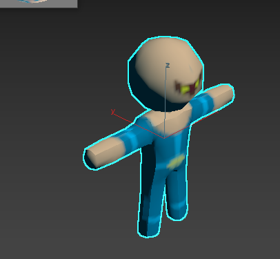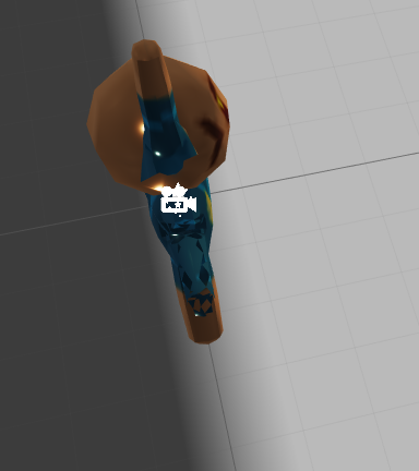 然后导入游戏后是这个样子的,简单来说,就是视线从正面看小人的时候是看不到脸的,想要看脸,得从后脑勺看向正面,然后透过了后脑勺。才能看到脸。好像是引擎对于小人的表面是不渲染的,只渲染内面。所以你可以透过后脑勺看到脸的内面,才能看到眼睛。