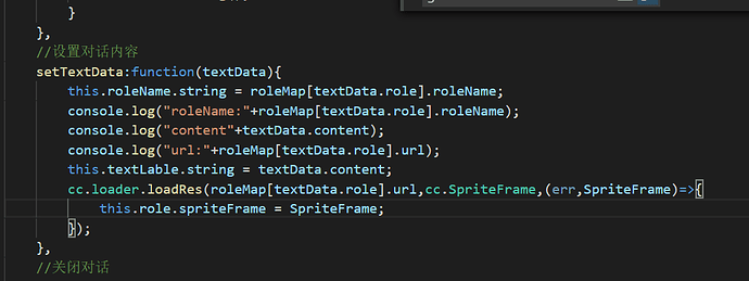 cc.loader.loadRes({url:roleMap[textData.role].url,type:“png”},cc.SpriteFrame,(err,SpriteFrame)=>{