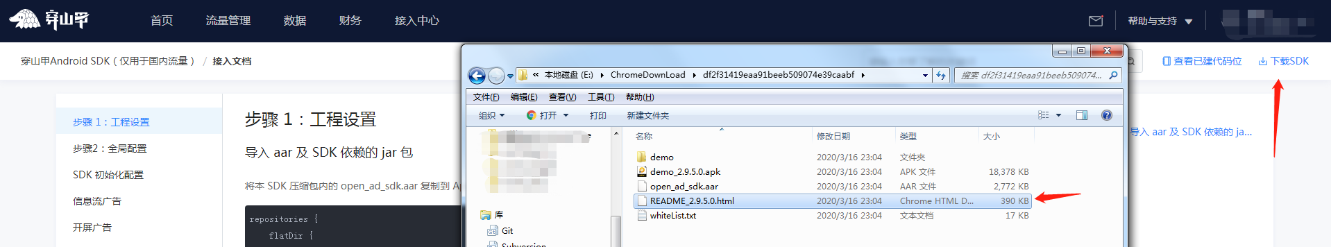 • 官方网站(注册等录后在接入中心可以找到接入文档,如下图)