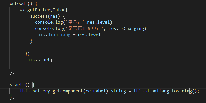 你这个写法。。。电量的获取是异步的,把start换成show方法,然后再回调里直接 this.show(res.levle),就行了。。。