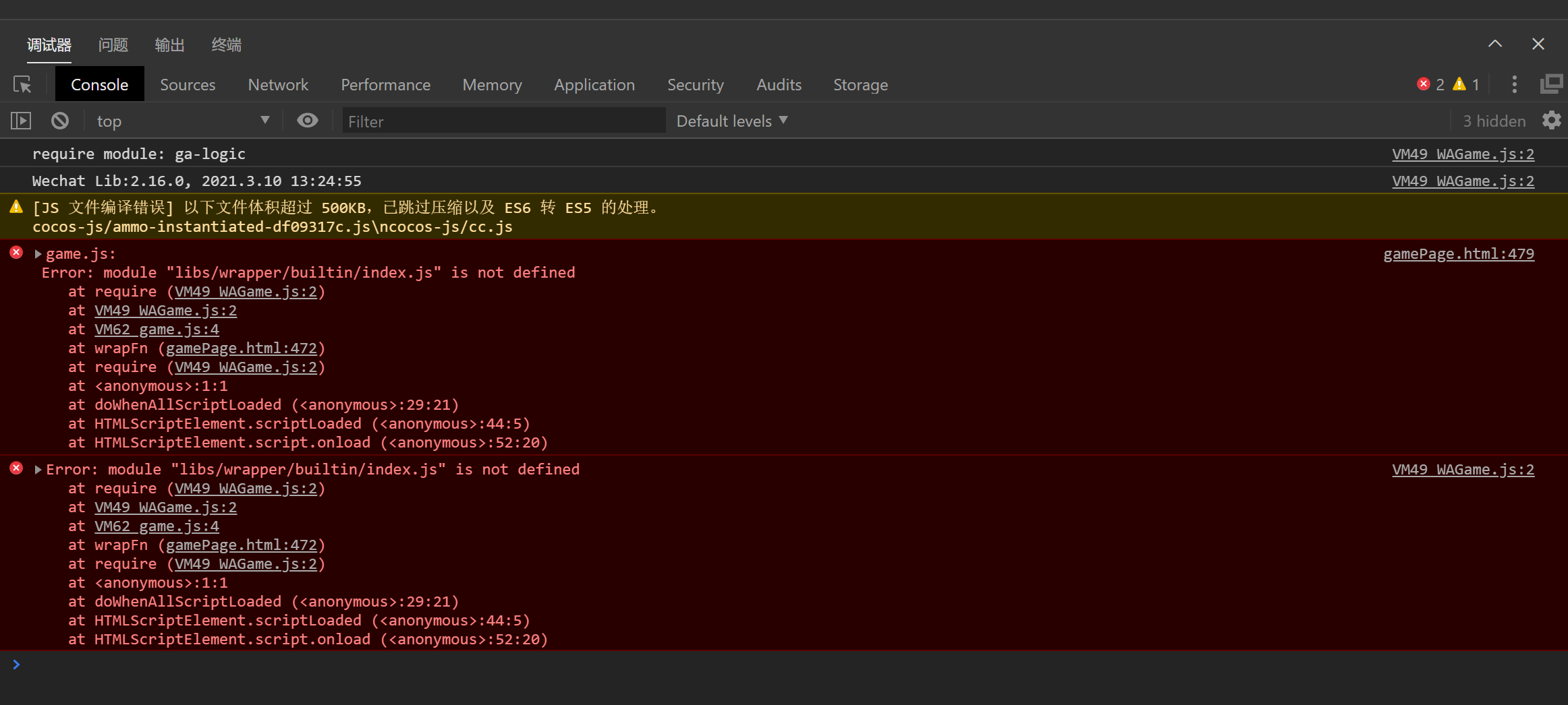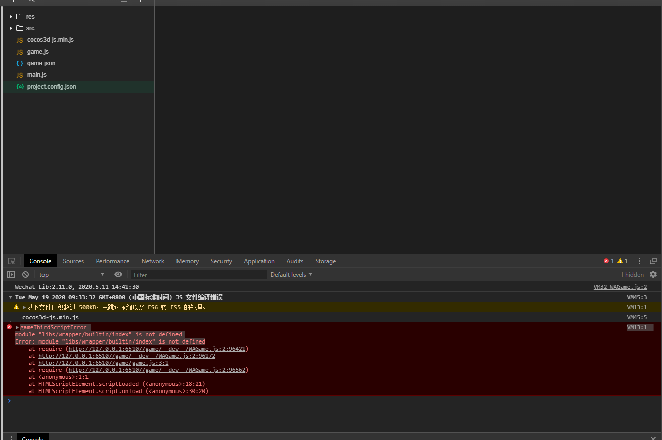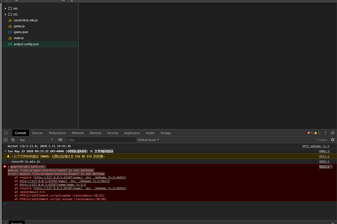 Creator 3D 构建微信小游戏后用微信开发者工具打开时报错