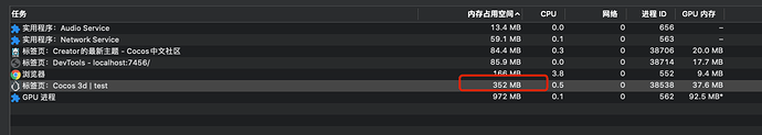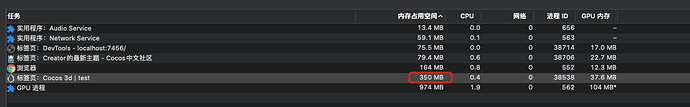 _点击load按钮加载一首mp3 观察到 loader._cache 多了两个文件,一个json,一个mp3,这个跟预期一样,没问题,看内存占用。 350M
