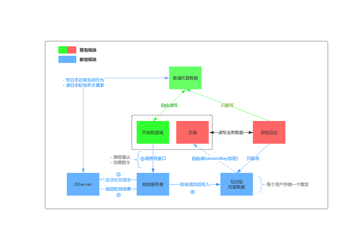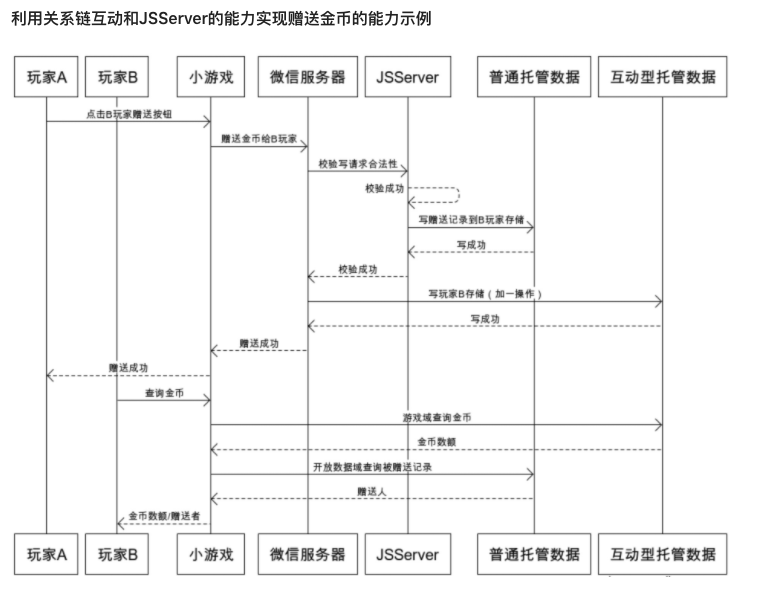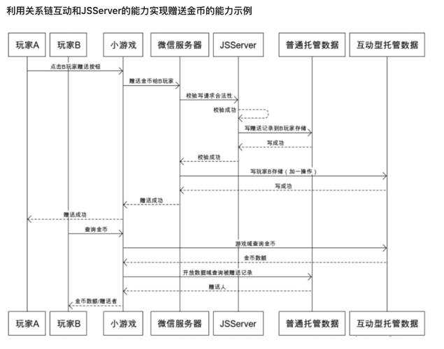 在开放 关系链数据能力 的基础上,小游戏新增 互动型托管数据 ,提供关系链互动能力,用于实现小游戏内微信好友互动(点赞,送礼物等)的功能。