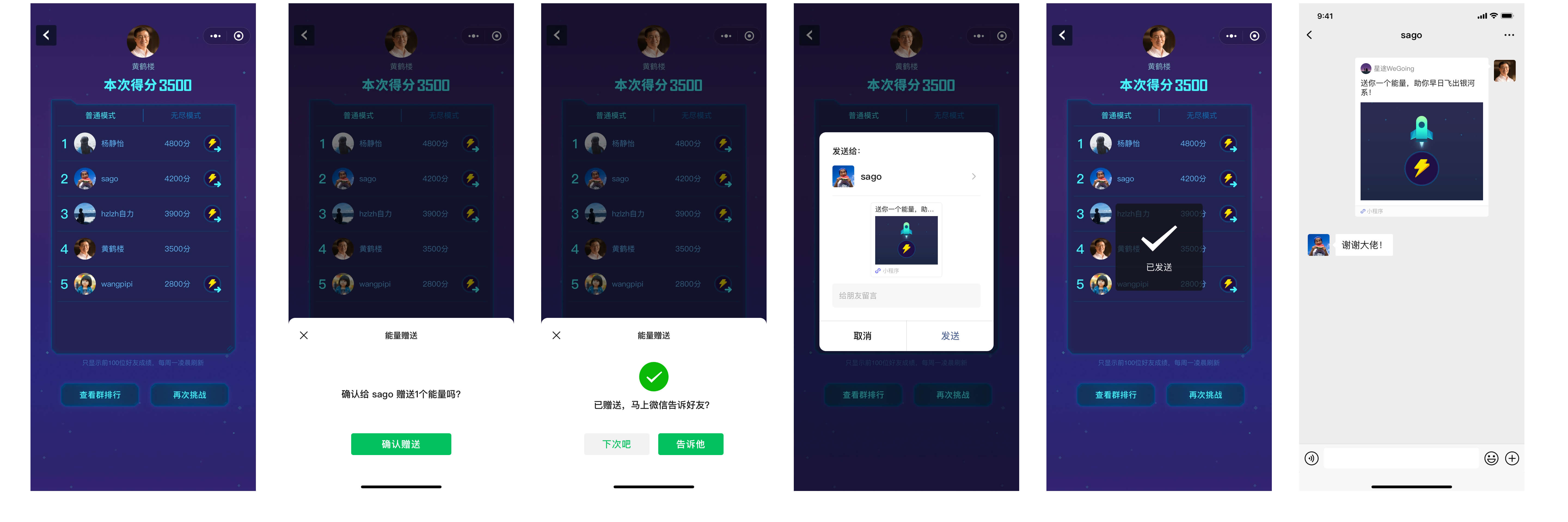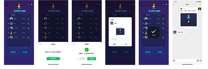 - 用户发起互动后,可通过微信分享消息告诉好友。