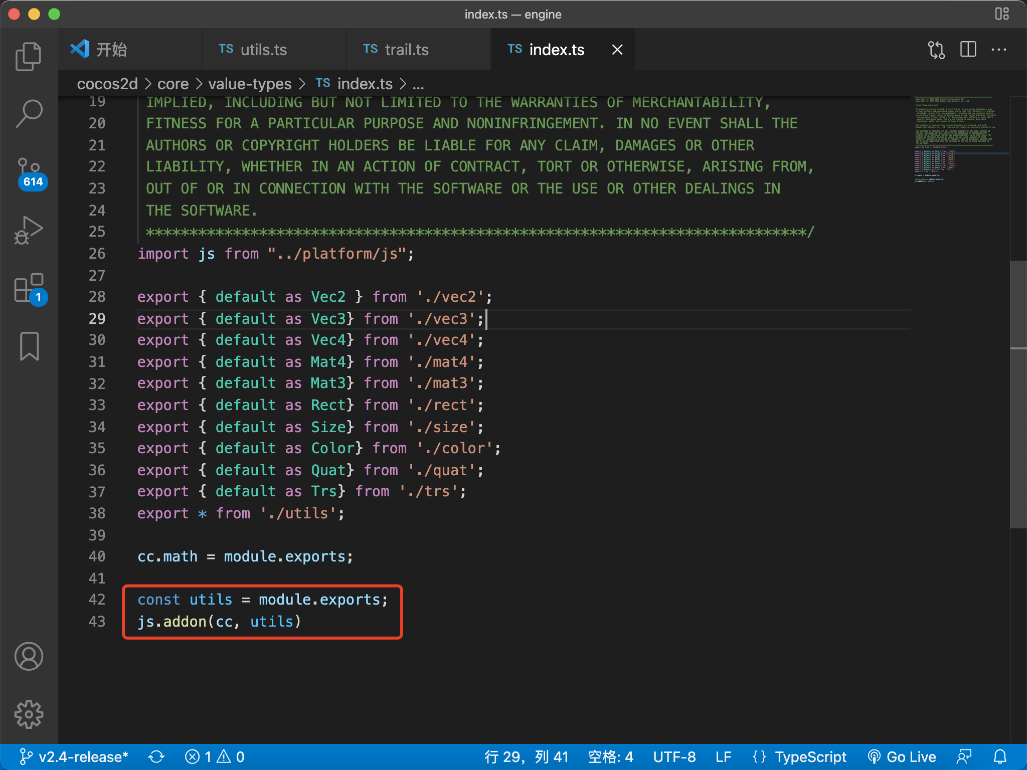 utils 里面的方法可以用 cc.math 访问。这个地方的 .d.ts 是有问题的。会进行修改。