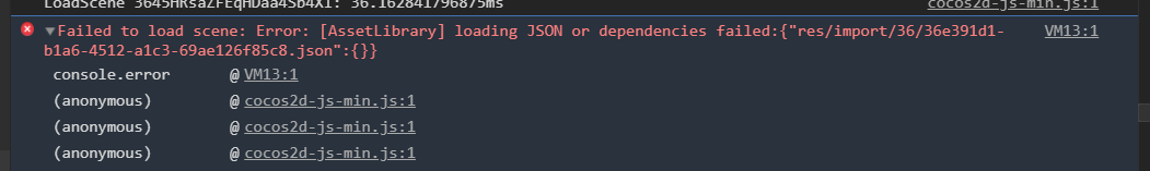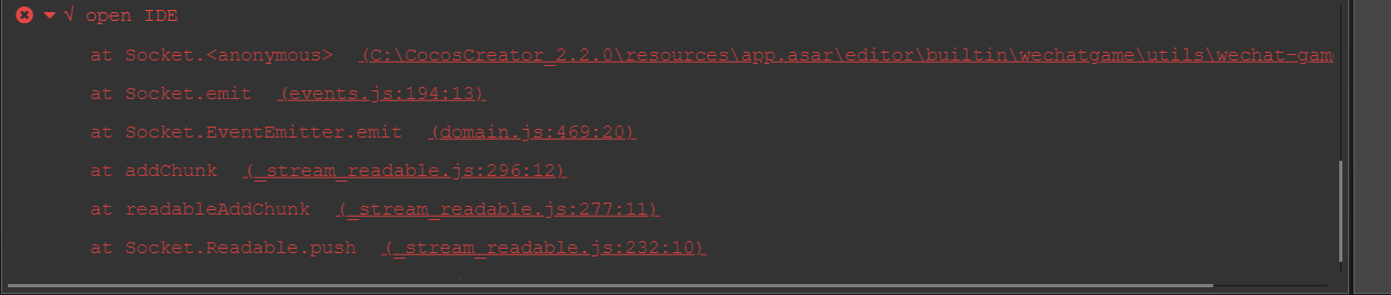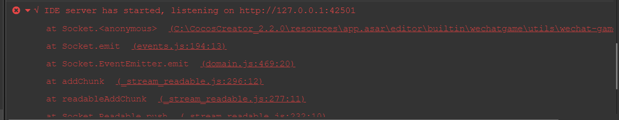 然后点击发布面板的运行按钮,creator控制台报错如下: