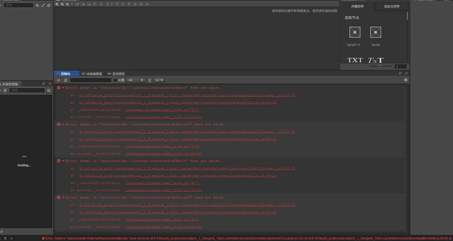 Error: Asset in “resources/db://internal/resources/effects” does not exist.