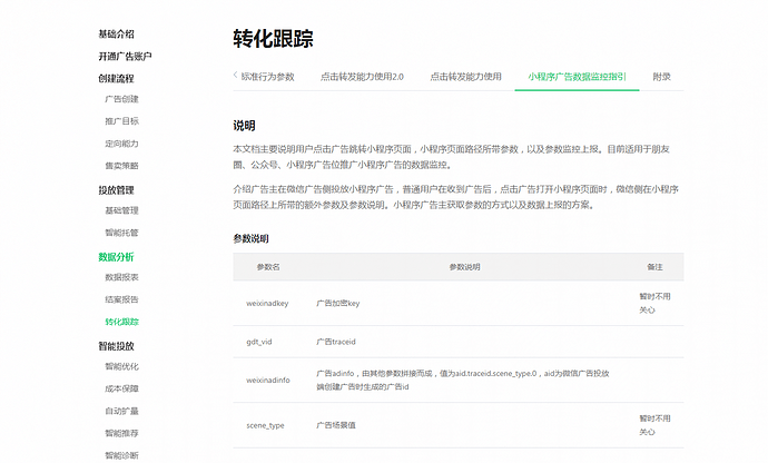 小游戏准备做广告投放,需要给服务器上报转化追踪的一些数据。如下: