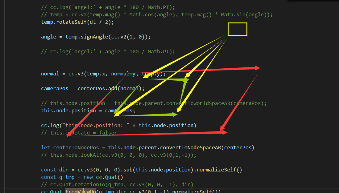 这个完全不好使。。。在creator中摄像机的上方向如图应该是(0,1,-1)的归一化向量,吧摄像机脱离(0,0,0)点,然后让他面向(0,0,0),然而用lookat摄像机就跟有病一样,这个lookat很莫名