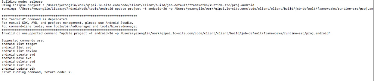 构建完成了 点编译时 报错误 update project -t android-26 -p
