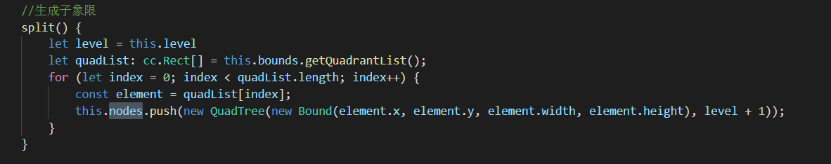 使用四叉树就是使用分类的方法,减少碰撞节点的个数,只取出与给定碰撞体相同区域或者压在碰撞体所在区域边上的对象。