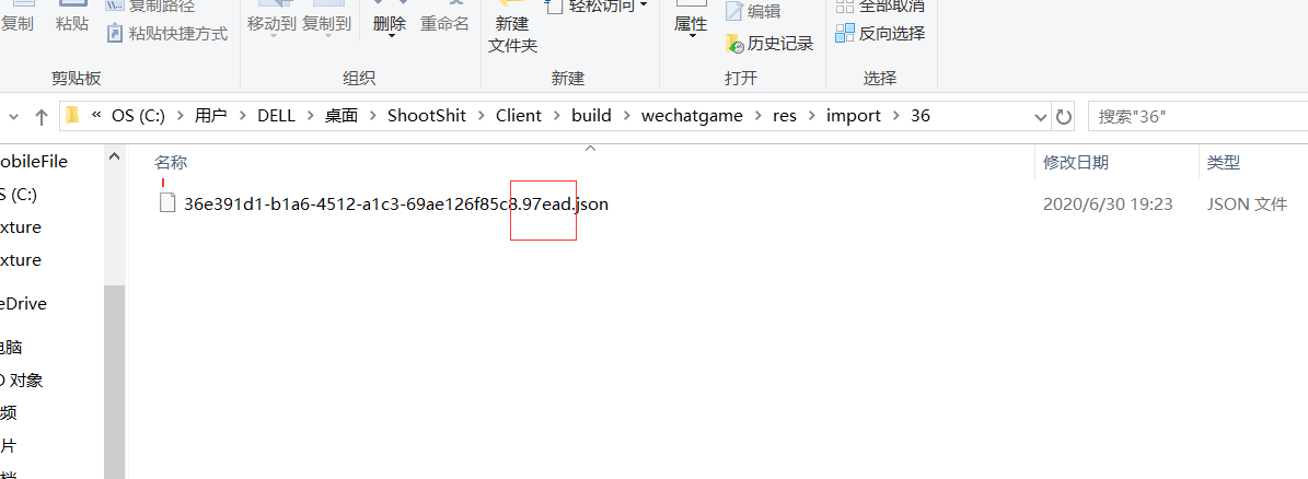 我去报错路径下查找该Json文件,没找到,但是发现有一个名字很像,区别在于名字后面加了(.xxxxx)后缀的json文件,如图: