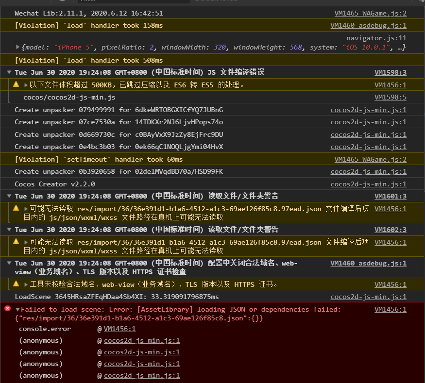 构建发布微信小游戏过程中开发者工具报错