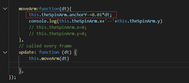 实现同样的moveArm效果,直接this.theSpineArm.runAction(cc.moveTo/cc.moveBy…)不就好了吗